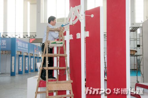 展区内的粉刷施工