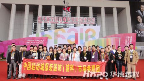 2010年10月24日胜利闭幕的第十四届宁波国际服装服饰博览会上,有多个团组参观。图为中国轻纺城服装服饰(辅料)市场参观团。