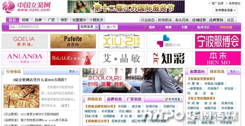 中国女装网(www.nz86.com)在首页一屏推出宁波服博会形象宣传。