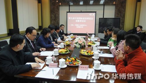 (通讯员 成羽)2011年1月24日下午,第九届中国家博会(北京)迎新茶话会在中国轻工业展览中心举行,家博会组委会与轻工各协会、媒体朋友欢聚一堂,共度新春。中国轻工业展览中心主任房敏致迎新贺词,中国轻工业展览中心副主任张勇主持,宁波市江东区副区长周少华通报第九届中国家博会筹备工作进展情况,宁波市会展办副主任张幸迩通报宁波市的会展业发展情况,江东区贸易局局长金伟杰、家博会执行承办单位宁波华博会展公司董事长杨杰与媒体进行了深入交流。中国搪瓷协会、中国日杂协会等轻工协会负责人以及消费日报、人民日报市场报、国际商报、中国日报英文版、中国新闻社等中央媒体记者参加家博会迎新茶话会。