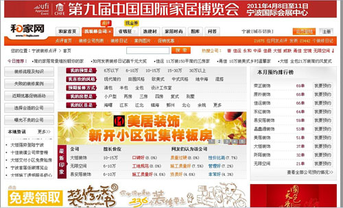 家博会在和家网(宁波站)首页的置顶形象宣传。