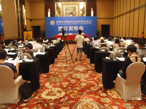 (通讯员 成羽 寿雯静)2011年9月29日下午14:30,海洽会组委会在宁波香格里拉大酒店召开推介发布会宣布:以推动实施国家海洋战略为目的的、中国首个海洋经济投资类展会----首届中国海洋经济投资洽谈会(简称“海洽会”)定于2011年11月10日至12日在宁波举行。浙江省发改委党组成员、省海经办专职副主任、海洽会组委会办公室副主任张善坤致辞,宁波市海经办副主任、海洽会组委会办公室副主任陈飞龙作推介发布,宁波市外宣办主任郑丰主持推介发布会。海洽会组委会相关工作部负责人以及人民日报、新华社、中央电视台、中央电台、浙江日报等中央、省驻甬媒体、宁波媒体、各大网站驻宁波机构等70余人参加会议。