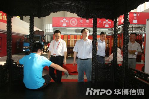 中国轻工业展览中心主任房敏(左一)、江东区副区长邵方毅(左二)、华博董事长杨杰(右一)