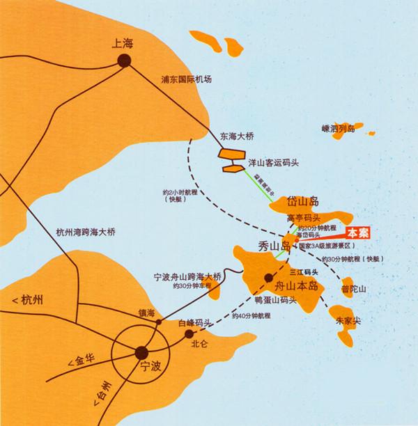 金沙湾,位于舟山市国家AAA景区秀山岛东侧,背山面海,与舟山本岛仅15分钟航程,与宁波市区约2小时路程。