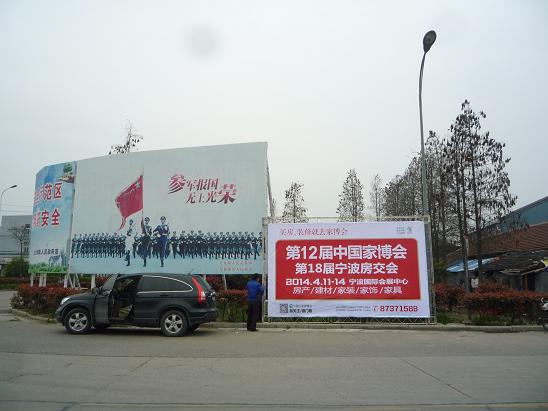 (通讯员 邵丽琼)近日,第12届家博会暨第18届宁波房交会户外支架广告纷纷亮相于骆驼、庄市、渡口、九龙湖等宁波市各区,联合推广家博会形象。