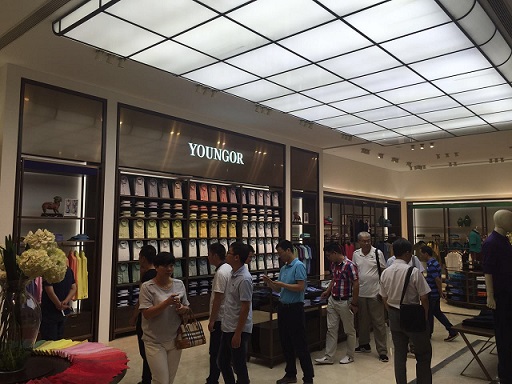 随后考察团一行到达雅戈尔展示厅,厅内展示有雅戈尔旗下五大服装服饰品牌的当季新品及有代表性的经典款式。最后,考察团一行在程总的引导下,参观了雅戈尔衬衫生产车间及西装生产车间。
