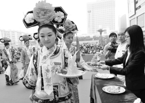 今年精品美食展的主会场设在世纪东方广场的外围,共吸引了70家企业参展,现场展示了500多种各色美食。昨天一早记者在现场看到,美食展还没正式开幕,每个摊位前已是人头攒动了。