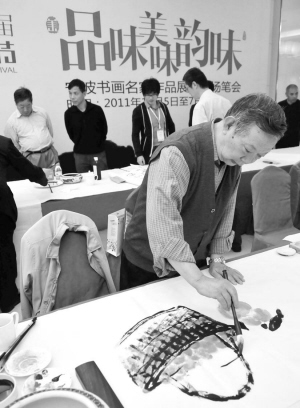 今年的宁波美食节凸显了浓浓的文化氛围。昨天上午,宁波书画名家美食主题现场笔会暨书画作品展在世纪东方广场二楼开展,20位书画名家现场挥毫泼墨,展示美食文化的魅力。