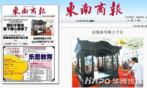昨日上午,第十届中国家博会夏季展在宁波国际会展中心开幕。一家红木企业把号称上千万元、耗材4吨卢氏黑黄檀的“乾坤大宝床”搬到了展馆。“一张床就是一套别墅的价啊。”市民王先生一边拍照片,一边感叹。记者 王增芳 摄