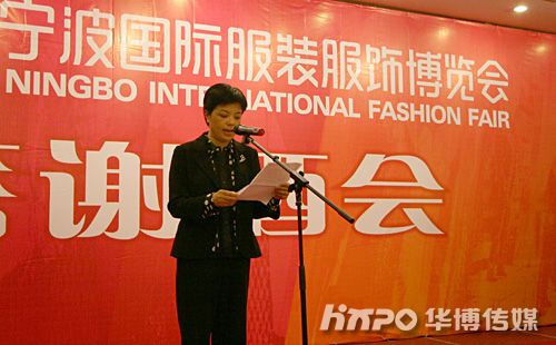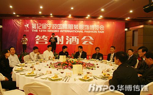 答谢酒会由宁波市政府副秘书长陈炳荣主持,出席答谢酒会的领导和嘉宾还有市政府副秘书长张松才、市经委主任林克宇、市经委副主任周学明以及来自国内外兄弟城市有关部门负责人,海内外工商界、服装界和新闻界的代表。