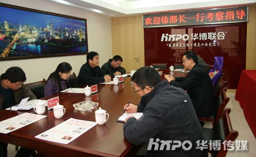 (通讯员 综合部刘凡)2009年1月8日上午,江东区委常委、组织部长徐大聪在区人事局副局长胡冬平等有关部门负责人的陪同下莅临华博公司考察,并送来了区委、区政府对优秀服务企业的殷切慰问。