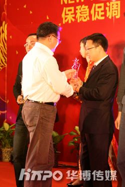 市会展办主任张松才(左一)、副主任陈文飞(右一)分别为宁波华博会展颁奖