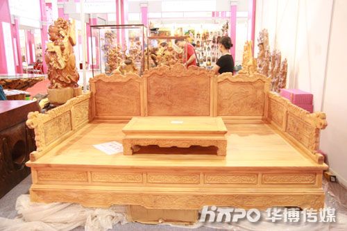 2008“盛世收藏展”现场:参考价58万元的红豆杉罗汉床