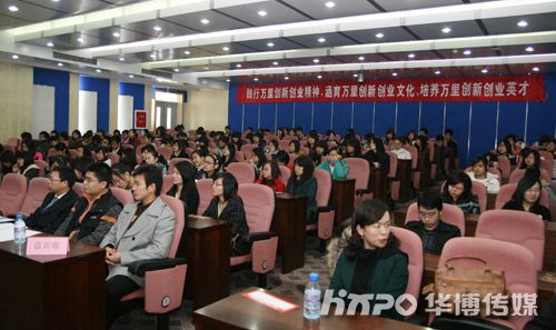 (文/摄 传媒部应春娇)2008年12月3日上午,华博联合会展人才专场招聘会在浙江万里学院举行。共青团浙江万里学院商学院委员会书记孟祥敏主持招聘会,浙江万里学院商学院院长闫国庆,共青团江东区委副书记、江东区青年联合会主席周涛,浙江万里学院商学院党委书记兼副院长谢荣光,浙江万里学院商学院营销与物流系主任任国岩,江东区青年联合会副主席、宁波华博会议展览有限公司董事长杨杰作为嘉宾出席了招聘现场。闫国庆院长、周涛副书记和杨杰董事长还分别在招聘会上作了讲话。