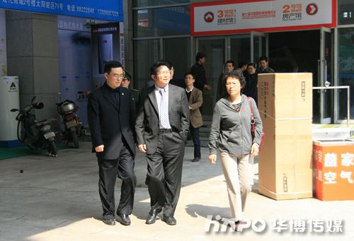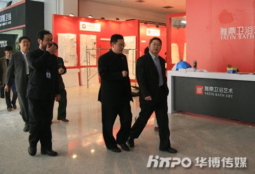 宁波市政府副秘书长张松才(左二)在有关领导陪同下视察家博会布展