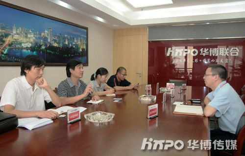 在参观完公司的风采走廊后,周院长一行于华博会议室就座,综合部经理吴继煌代表公司同仁对周院长的到访表示热烈欢迎,随后,双方就如何开展院校合作展开深入探讨,并对宁波会展设计人才培养等进行了交流。