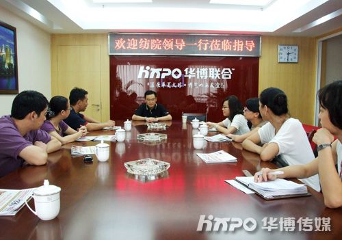 在调研会上,罗任来副院长首先介绍了纺院的基本情况及专业建设情况,并提出了工学结合,谋求共赢的良好意愿。杨杰董事长认同了罗院长的建议,并针对宁波会展行业的特征提出了许多宝贵的实践经验,建议纺院会展设计专业积极建立人才培养机制,形成系统的会展监理体制,通过对会展设计材料、现状等的调研,开展相关培训,从多方面完善会展设计相关产业链。