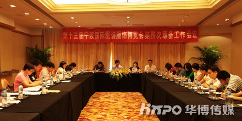 (通讯员 徐燕、成羽)9月25日上午,第十三届宁波国际服装服饰博览会第四次筹备工作会议在宁波香格里拉大酒店召开,市经委相关处室人员及各县(市)、区责任部门负责人及联络员、服博会组委会相关人员近40人参加了会议。市经委副主任周学明出席会议并讲话,市经委外经与市场处、执行承办单位华博会展公司及组委会各部门负责人介绍了筹备工作成果和展期工作安排。