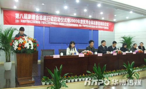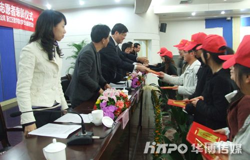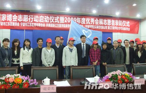 (文/摄 综合部刘凡)2010年3月30日下午13:30,第八届家博会志愿者启动仪式暨优秀会展志愿者表彰仪式在万里学院隆重举行。宁波市江东区人民政府副区长周少华、浙江万里学院商学院院长闫国庆、副院长谢荣光、共青团宁波市江东区委员会书记王宁、江东区贸易局副局长许苏甬等领导出席了仪式。