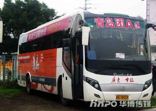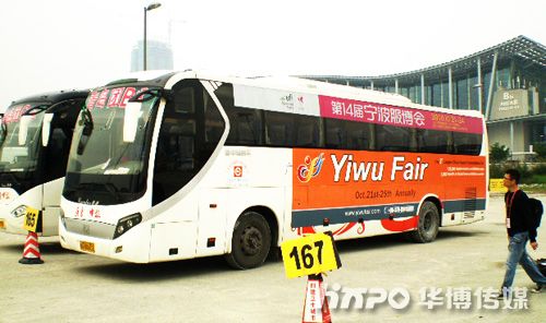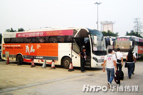 广交会专用巴士车身上粘贴宁波服博会宣传广告