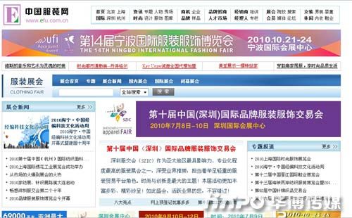 中国服装网展会频道首页页面