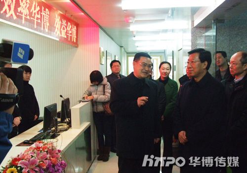 (通讯员 成羽)2011年2月15日上午,浙江省委常委、宁波市委书记王辉忠在市委常委、市委秘书长王剑波、市政府副市长苏利冕和江东区委书记胡军、江东区区长孙黎明等领导陪同下,亲临华博联合考察指导。华博联合董事长杨杰向王辉忠书记一行详细介绍了华博公司的成长历程、业务模式、经营业绩和发展思路,王书记一行还饶有兴致地参观了“华博风采走廊”,并走进公司各部门,了解会展经济各流程的运营情况,与员工进行了亲切交谈。王书记充分肯定会展经济在宁波发展中的独特作用,高度评价华博公司的做法和经验,并寄语华博团队再接再厉、再创辉煌。