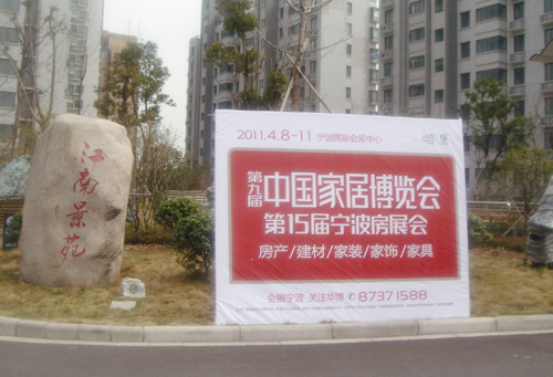 江南景苑小区的家博会支架广告