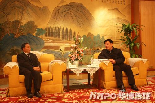 刘奇市长(右)与步正发会长(左)作亲切交谈。