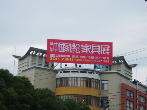 第九届中国国际家居博览会夏季展(家博会家具展)户外形象宣传登陆北仑星新手机大卖场楼顶,服务北仑市民。