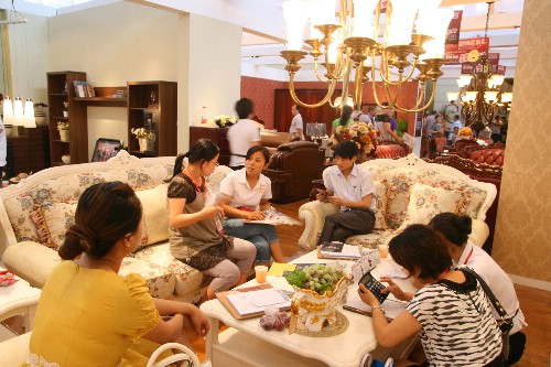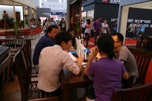 皇朝家俬有总裁签售、抽取ipad等优惠营销,进账数百万元,同比提升20%左右;名艺名居红木有增值回购举措,现场签单500多万元,意向客户100多宗,分别来自香港、台湾等地;北欧森林13套纪念版缅甸黑胡桃木家具全部售出,此外还有100多万元进账;“格拉纳”洗衣柜现场签单100多单,总计30多万元;青岛的杨先生订走了一集装箱的柚木家具产品,不胜枚举。