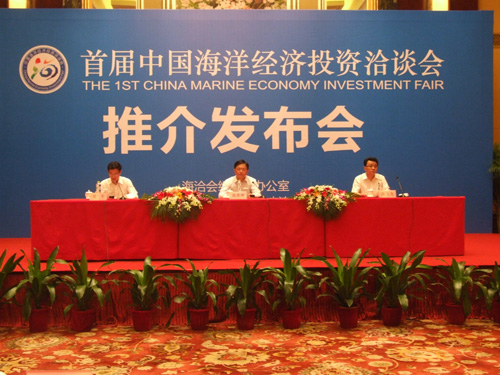 (通讯员 成羽 寿雯静)2011年9月29日下午14:30,海洽会组委会在宁波香格里拉大酒店召开推介发布会宣布:以推动实施国家海洋战略为目的的、中国首个海洋经济投资类展会----首届中国海洋经济投资洽谈会(简称“海洽会”)定于2011年11月10日至12日在宁波举行。浙江省发改委党组成员、省海经办专职副主任、海洽会组委会办公室副主任张善坤致辞,宁波市海经办副主任、海洽会组委会办公室副主任陈飞龙作推介发布,宁波市外宣办主任郑丰主持推介发布会。海洽会组委会相关工作部负责人以及人民日报、新华社、中央电视台、中央电台、浙江日报等中央、省驻甬媒体、宁波媒体、各大网站驻宁波机构等70余人参加会议。
