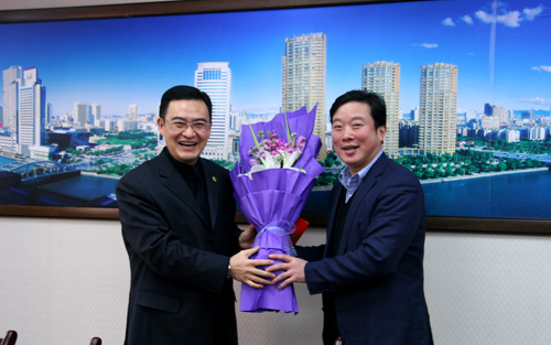 宁波江东区委常委、组织部长陈杰农(右)与华博联合董事长杨杰(左)