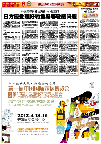 《宁波日报》2012年3月7日 第A14版第十届家博会形象广告