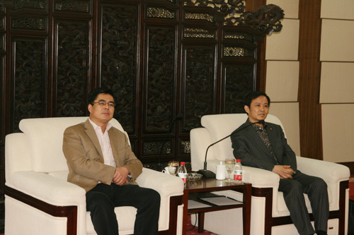 宁波市江东区副区长邵方毅(左)和宁波市会展办副主任徐合如(右)
