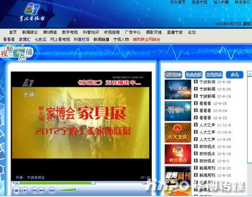 (通讯员 陈辛茹)宁波电视台一套新闻综合频道《家博汇》栏目,第十届中国家博会广告开播。