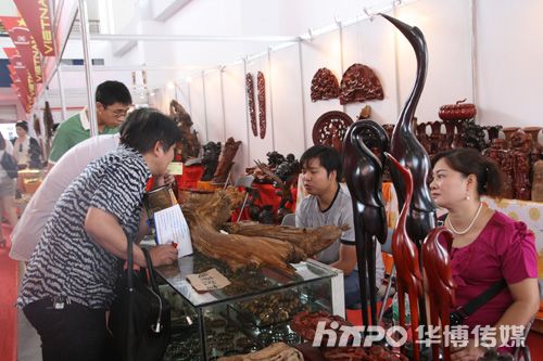 7月9日,是正在宁波国际会展中心隆重举行的第十届家博会夏季展的最后一天,越南、巴基斯坦及景德镇的红木、沉香、玛瑙石工艺品、黑檀屏风等展品大清仓销售。(越南展区一)
