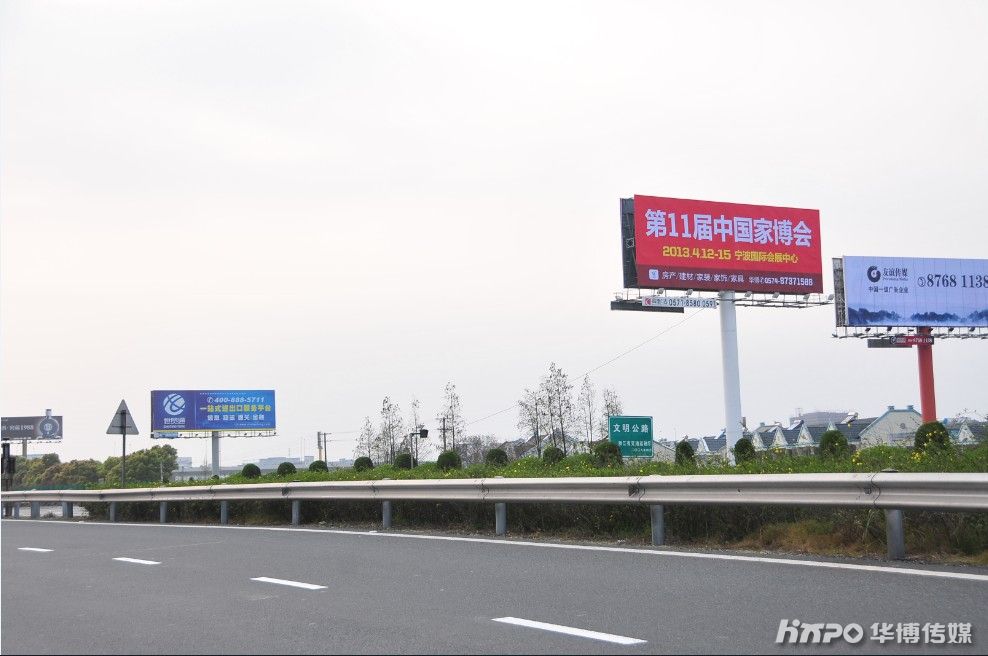 位于宁波杭甬高速段塘出口处的家博会高炮广告欢迎来自各地的客商前来宁波参展参观四月家博会。
