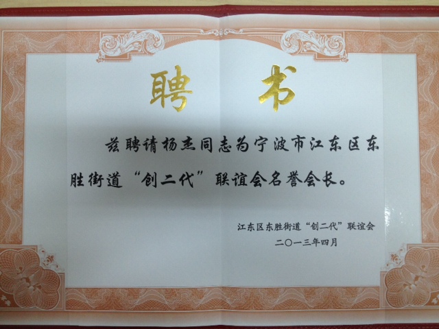 (通讯员 郁俏峰)华博公司董事长杨杰日前被聘请为江东区东胜街道“创二代”联谊会名誉会长。“创二代”联谊会是开展学习交流、推动联谊合作、服务成长成才的平台,让“创二代”成为爱党爱国的表率、创业创新的表率、担当尽职的表率,成为企业家信赖的“会员之家”。