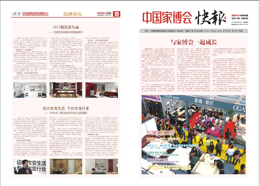 (通讯员 郁俏峰)家博会第74期快报火热出炉,本期快报组委会走访了了家博会十余家参展企业,其中既有从家博会第一届就开始参展的老客户,也有第一次参展的新客户,许许多多的企业通过家博会这一平台发展壮大、开疆拓土,同时也感谢广大企业和消费者十年来对家博会的坚守和信任。