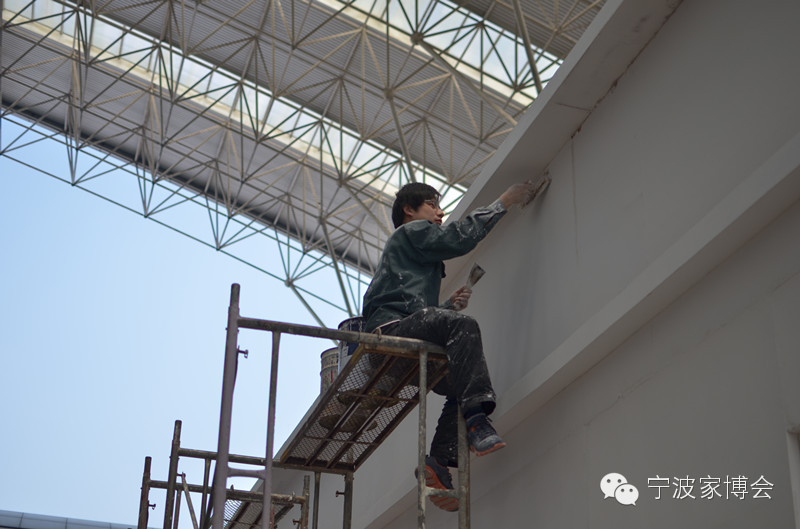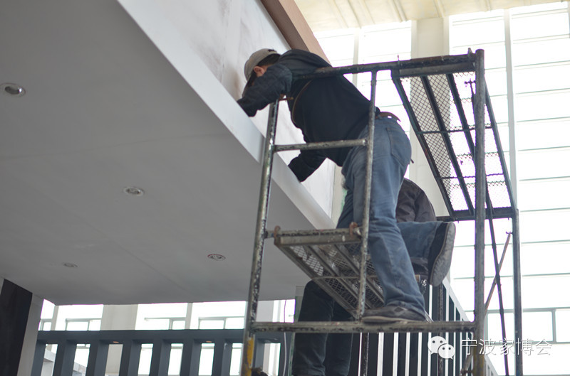 展会搭建现场,工人们正在分秒必争地进行展位搭建,他们马不停蹄的辛劳即将换来一个个高端、华丽、时尚的展位,让我们共同期待,他们将如何描绘出家博会一道道闪亮的风景线。