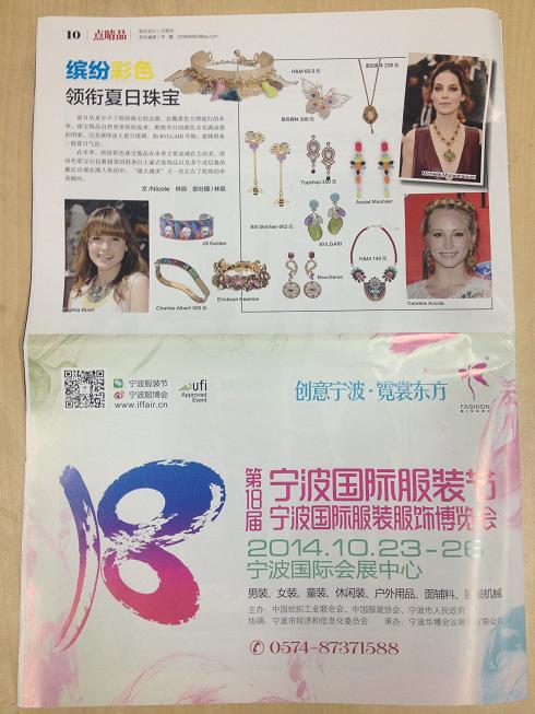 (通讯员 邵丽琼)7月11日,第18届宁波国际服装节(服博会)广告宣传登入《服饰导报》。据悉,服装节(服博会)广告形象宣传将定期在该报纸上投放直至第18届宁波国际服装服饰博览会开幕。