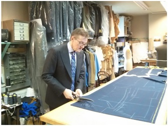 测量完成后,大师会主动递给客户自己的名片,这样做据说是如果以后服装有什么问题,客户可以马上找到大师,也意味着大师对这套服装负责。之后,大师将摄影资料输入电脑,回放,和测量数据进行对照,确定后,一份表明尺寸的表格式和一份表明修改部位和着重点的解构图型,注明了客户的姓名等信息的定单,就此产生。随后将回到英国,进行裁剪、制作。
