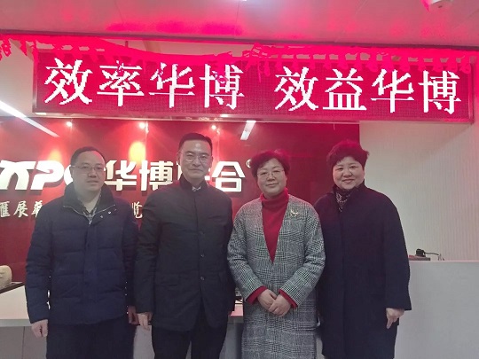 我司董事长杨杰向杨主任一行汇报了华博公司去年的发展情况和新年的愿景,杨主任一行充分肯定华博公司的发展成绩,对华博公司为宁波会展和经济、社会发展做出的贡献表示感谢,希望华博公司不断加强依托产业、服务产业、提升产业的功能,发挥行业标杆作用,更好地服务宁波“名城名都”建设。