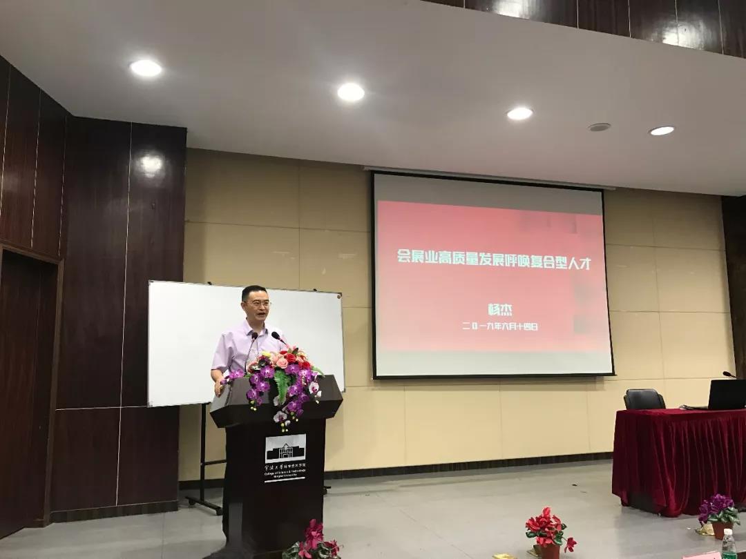 我司董事长杨杰受邀以“会展业高质量发展呼唤复合型人才”为主题进行讲座,并受聘为宁波大学科学技术学院管理学院专业建设特聘专家。